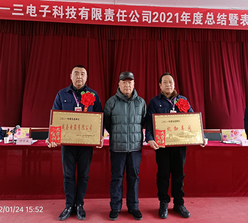 會(huì)議在莊嚴(yán)的國(guó)歌聲中開幕,常務(wù)副總經(jīng)理胡軍成同志做了2021年度公司工作報(bào)告,副總經(jīng)理頡海浪同志宣讀了2021年度公司表彰決定,參會(huì)領(lǐng)導(dǎo)分別為受表彰的先進(jìn)集體和個(gè)人頒獎(jiǎng)。同時(shí),東煜集團(tuán)常務(wù)副總裁、公司黨委書記王輝同志,東煜集團(tuán)領(lǐng)導(dǎo)王和平同志圍繞董事長(zhǎng)三次會(huì)議精神和兩步走的總體戰(zhàn)略部署做了重要講話。