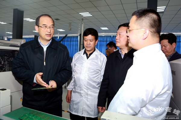 在聽(tīng)取我公司匯報(bào)和現(xiàn)場(chǎng)查看后,黃副省長(zhǎng)對(duì)我公司提出了希望和建議:要進(jìn)一步加快轉(zhuǎn)變發(fā)展方式,加大科技創(chuàng)新力度,進(jìn)一步提升產(chǎn)品的核心競(jìng)爭(zhēng)力和企業(yè)的市場(chǎng)競(jìng)爭(zhēng)力,努力把企業(yè)做大、做強(qiáng),要圍繞企業(yè)發(fā)展需要,認(rèn)認(rèn)真真、扎扎實(shí)實(shí)地做好各項(xiàng)服務(wù)工作。甘肅省工信委副主任、國(guó)防科工局局長(zhǎng)胡宗杰,甘肅省工信委副主任王海峰,天水市委副書(shū)記、市長(zhǎng)楊維俊,市委常委、副市長(zhǎng)張明泰一同調(diào)研,公司總經(jīng)理侯重民、黨委書(shū)記王輝同志進(jìn)行了陪同。