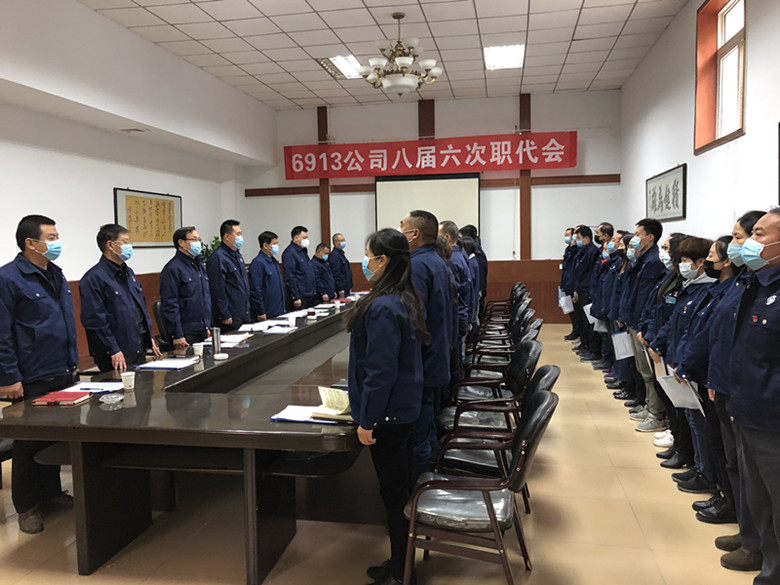 7410024月21日,6913公司八屆六次職代會(huì)在雄壯的國(guó)歌聲中開(kāi)幕,公司領(lǐng)導(dǎo)及職工代表共計(jì)43人參加了會(huì)議。