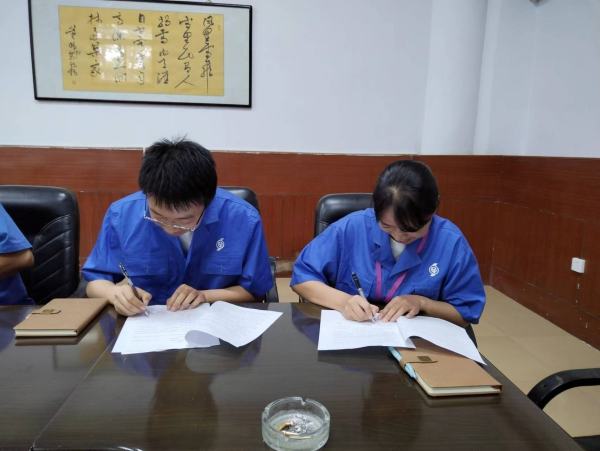 師傅代表王海玲在表態(tài)發(fā)言中說到:感謝公司給予的肯定和信任,在今后的工作中嚴(yán)格履行師傅職責(zé),將工作經(jīng)驗、崗位技能毫無保留地傳授給徒弟,做好徒弟工作上的啟蒙老師。徒弟代表羅國華在承諾表態(tài)中說到:感謝公司搭建的學(xué)習(xí)平臺,珍惜學(xué)習(xí)機(jī)會,虛心向師傅學(xué)習(xí)請教,聽從師傅安排,爭取早日成長為能獨當(dāng)一面的技術(shù)骨干。